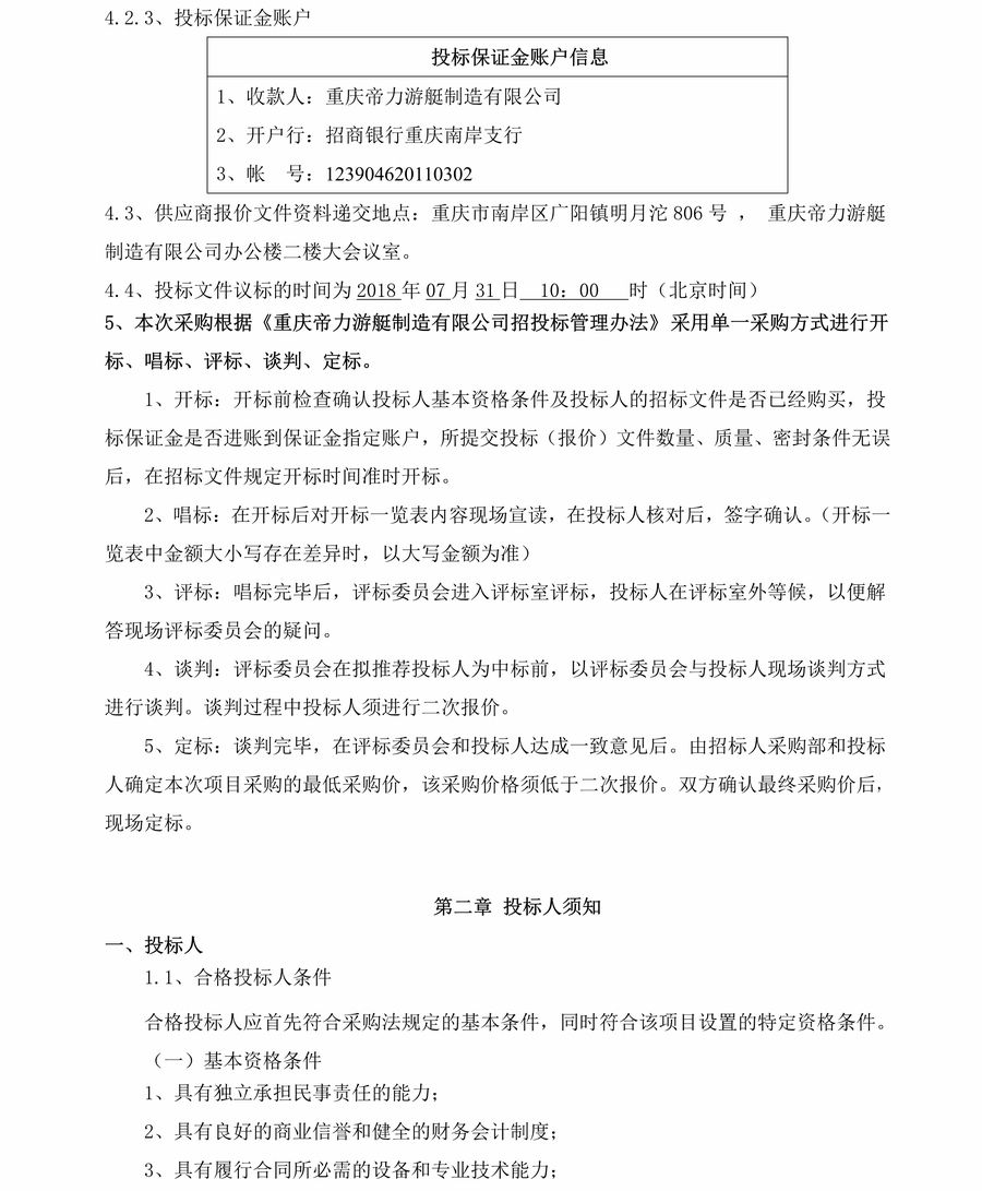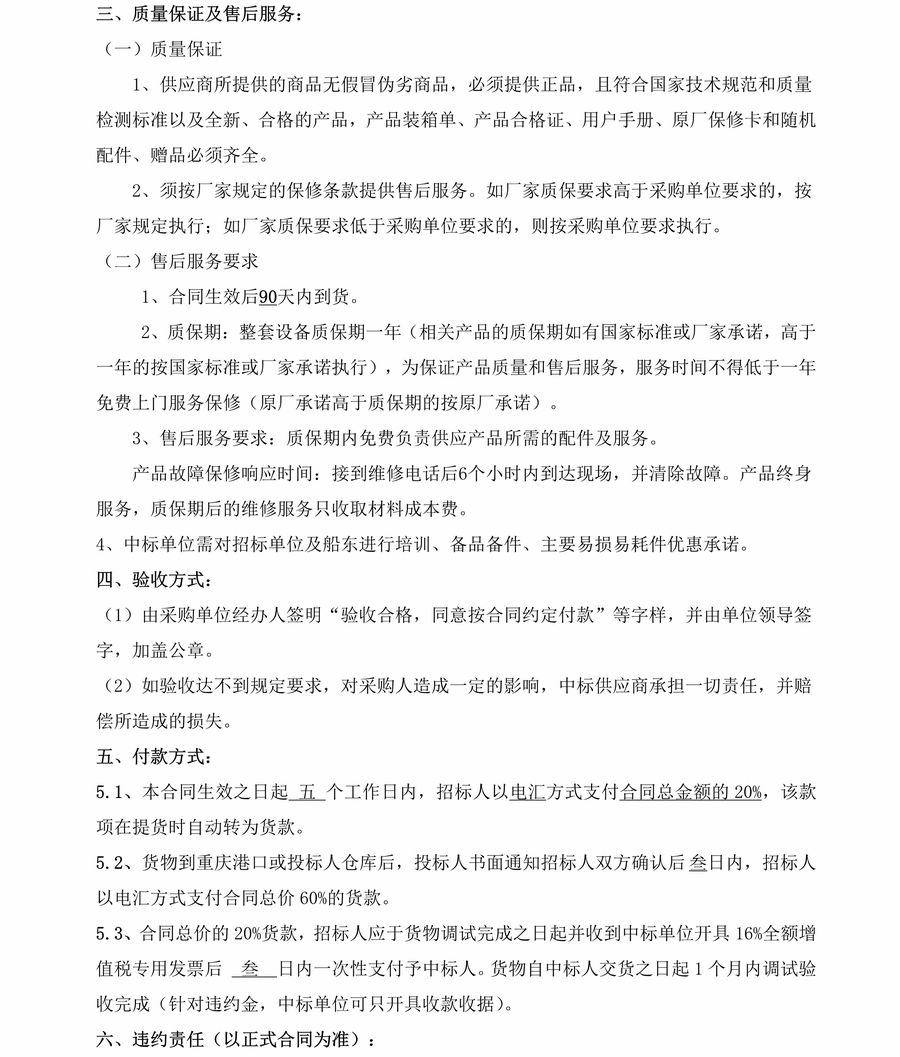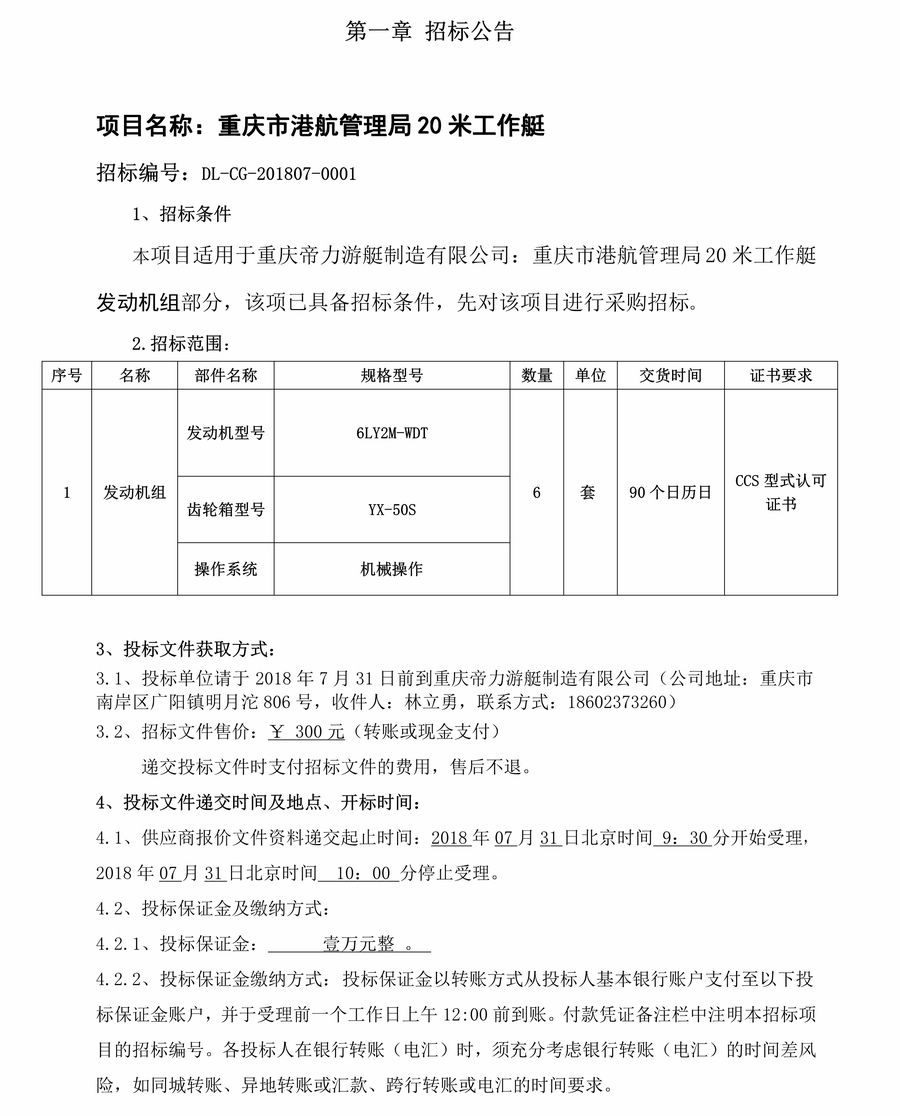 重慶市港航管理局20米工作艇發(fā)動機組招標公告